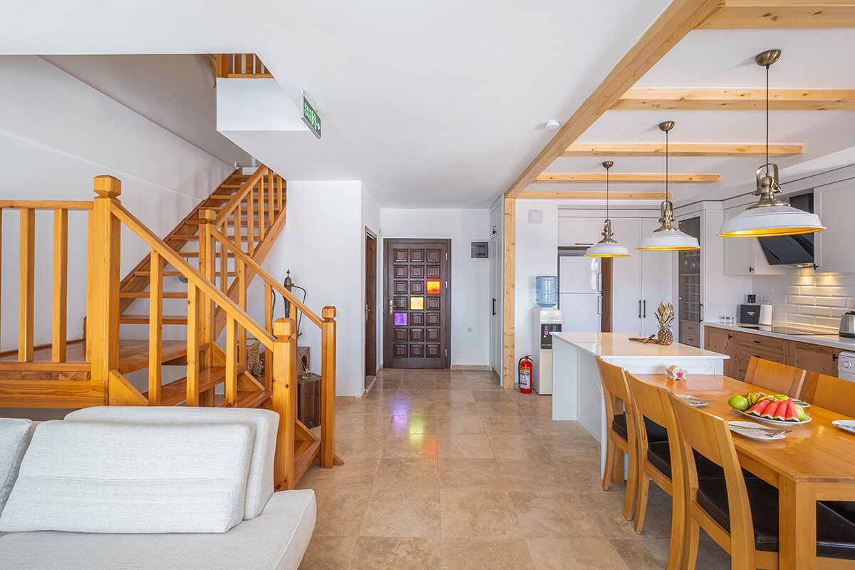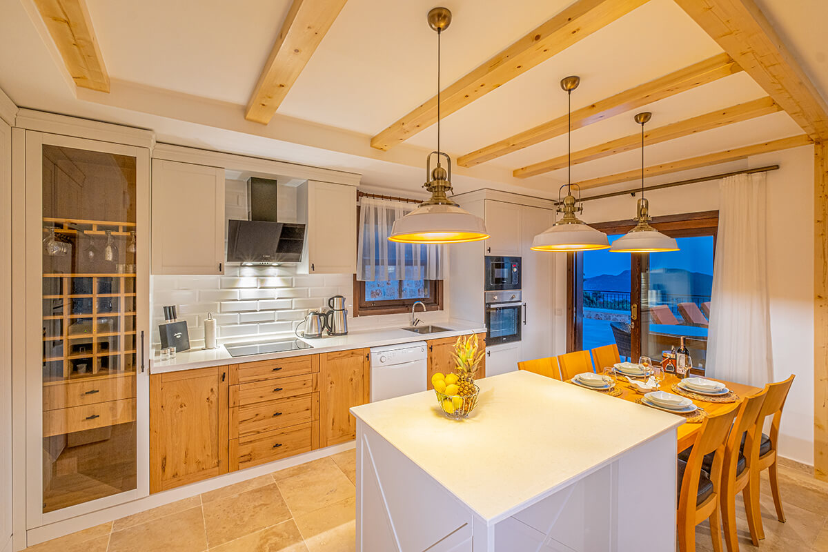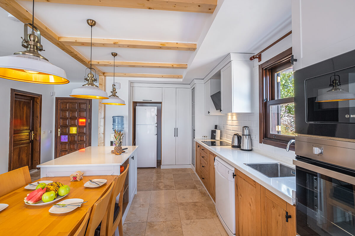 Tüm mutfak araç gereçlerinin mevcut olduğu, deniz manzarasının tadını çıkararak keyifli yemek yapabileceğiniz geniş, rahat bir mutfağı bulunmaktadır.