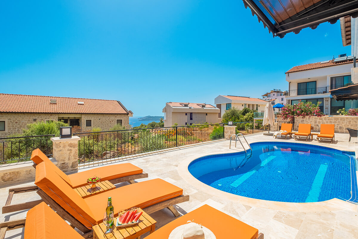 Aynı zamanda Villa Simena 2,5x8 metre genişliğinde bir havuza sahiptir. Havuzun tam yanına konumlandırılan şezlonglarımızda güneşin tadını çıkarırken, tüm standartlara uygun havuzumuzda serinleyebilirsiniz.